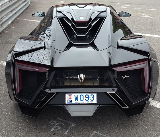 L’immagine della Lykan Hypersport nera vista di coda, nella foto scattata presso il Principato di Monaco, è gentilmente concessa da User:Ciuffone69 – Opera propria, CC BY-SA 3.0, https://commons.wikimedia.org/w/index.php?curid=32315062 ed è reperibile all’indirizzo: https://it.wikipedia.org/wiki/Lykan_HyperSport#/media/File:Principaute_de_Monaco_april_2014_2014-04-22_00-52.jpg nelle dimensioni originarie di 1334×1140 pixel e dal quale è stata scaricata nelle dimensioni ridotte di 562×480 pixel.