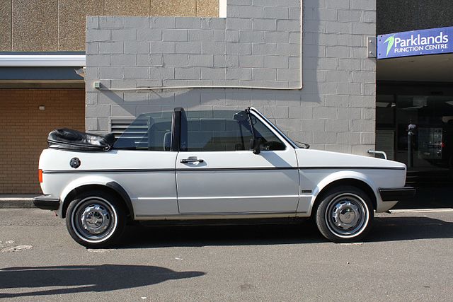 L’immagine, che offre la vista laterale della Volkswagen Golf Cabriolet GL del 1983 in apertura del presente post, è gentilmente offerta da Jeremy from Sydney, Australia – Volkswagen Golf Mk1 GL Cabriolet, CC BY 2.0, https://commons.wikimedia.org/w/index.php?curid=49692137 ed è reperibile all’indirizzo: https://it.wikipedia.org/wiki/Cabriolet#/media/File:1983_Volkswagen_Golf_(155)_GL_convertible_(27469960160).jpg nelle dimensioni originarie di 4752 x 3168 pixel, e dal quale è stata scaricata nelle dimensioni ridotte di 640 x 427 pixel e pubblicata su questo blog, nel presente post.