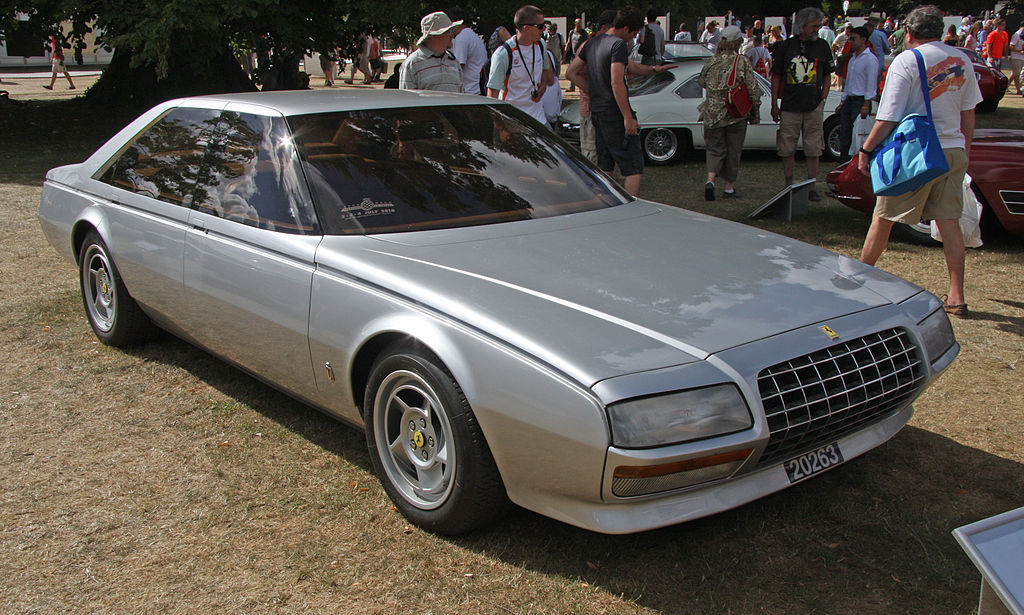Anzitutto devo dirvi che Ferrari 512 BB Pininfarina, in arte Ferrari Pinin, è stata la prima vettura del Cavallino Rampante dotata di quattro porte (già ben prima del più recente Ferrari Purosangue). Tale concept fu realizzato per celebrare il cinquantesimo anno di attività della Carrozzeria Pininfarina, e porta il nome (in breve) del suo fondatore. La carrozzeria è opera di Diego Ottina, diretto da Leonardo Fioravanti, e presenta linee nette e muscolose. In principio la supercar fu esposta come modello in scala 1:1 e solo in un secondo momento fu equipaggiata col motore V12 da 5 litri a V piatta della Ferrari 512 BB (per la quale era stato pensato). Mauro Forghieri (il celebre Ing. da poco passato a miglior vita) decise di montare come cambio manuale a 5 rapporti lo stesso del modello 400 GT, giudicandolo più adeguato a una berlina sportiva. Non solo il telaio, bensì anche freni, serbatoio e sospensioni furono realizzati ad hoc per questo modello unico.