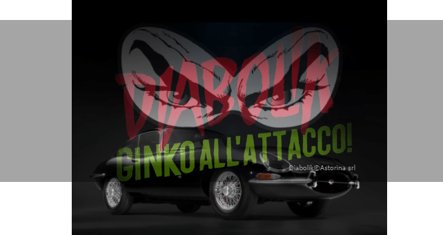 L’immagine proposta in apertura del presente post è ottenuta tramite sovrapposizione della locandina del film “Diabolik. Ginko all’attacco!” (gentilmente messa a disposizione del pubblico tramite la piattaforma di wikipedia, in data 6 agosto 2022, da Utente:Ap7189ap – Trailer del film su YouTube, Copyrighted, https://it.wikipedia.org/w/index.php?curid=9481625 ed è reperibile all’indirizzo: https://it.wikipedia.org/wiki/Diabolik_-Ginko_all%27attacco!#/media/File:Diabolik-_Ginko_all’attacco!.jpeg nelle dimensioni originarie di 2252x825px), sull’immagine proposta in apertura del precedente post Jaguar E-Type e Citroën DS: Diabolik o Ginko? (presente su questo stesso blog, dove è stato pubblicato in data 28 marzo 2022, alle ore 07.00, su esplicita licenza Diabolik©Astorina srl). Della locandina del secondo capitolo cinematografico “Diabolik. Ginko all’attacco!” è stata opacizzata la filigrana da 200 a 90 tramite l’uso del software PhotoScape