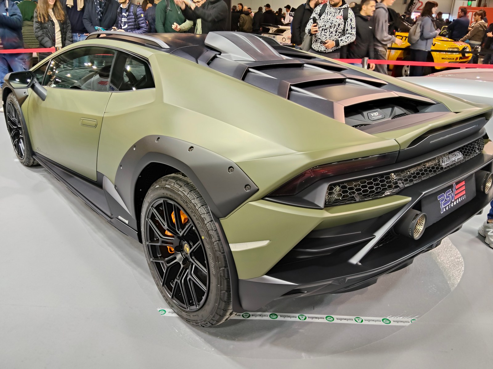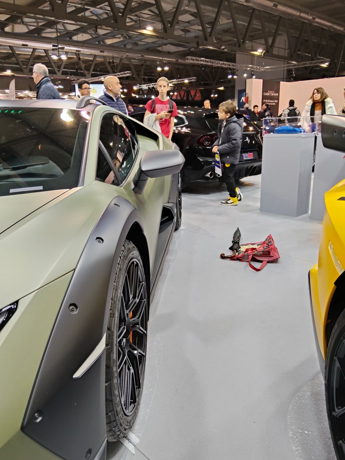 Ma poi ho potuto constatare di persona la temperatura dell’evento: molto alta. Ecco perché tra le prime foto di questo post ho messo anche un termometro. Temperatura alzata da tanti appassionati delle più diverse età. Ho visto che tra costoro ci sono tante donne. Quindi, d’ora in poi non dirò più le battute sul gentil sesso (i cui rappresentanti non saprebbero guidare). Lo prometto. In quest’edizione ho ammirato di persona (per la prima volta) la Lamborghini Huracán Sterrato in tutta la sua bellezza. Il colore della livrea del modello che ho visto ha molto del militare. Il che non toglie nulla alla meraviglia dell’auto in sé. Anzi, ritengo che lo esalti. Ma parlarne in un articolo e poi vederla di persona così da vicino: vi assicuro che è molto diverso. Il che ha generato una forte scossa in me.